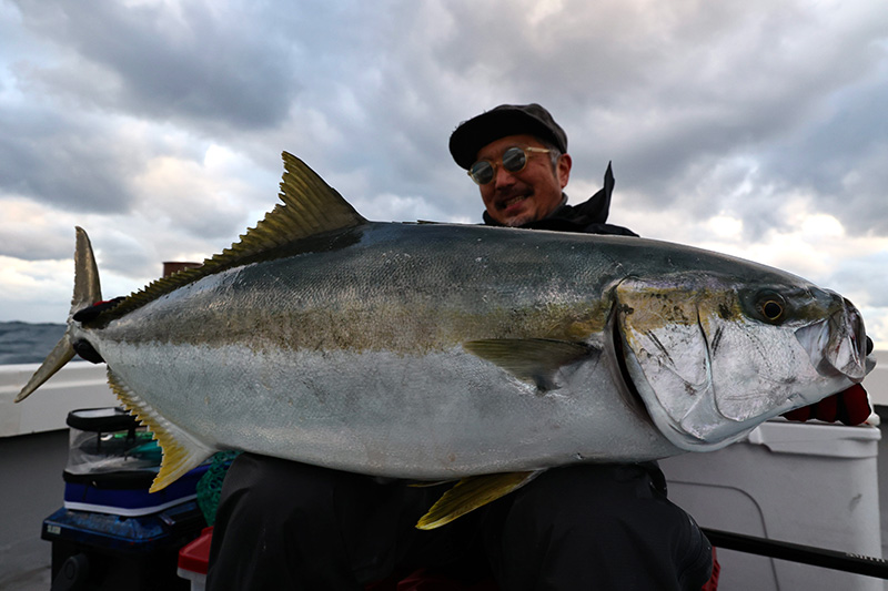 新幹線で遠征の浦田さんも苦難(てしまが原因?)を乗り越え、13kgのヒラマサをキャッチ。後日動画で顛末をご報告します。