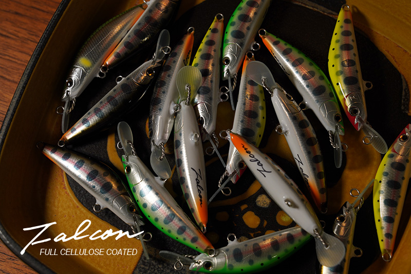 ご予約いただいていたファルコンの手書きネームを入れました。少しづつ違う書き方も大目に見てもらいつつ、強固なフルセルロースミノーですから、臆することなく今季の渓流で活躍させて欲しいと思います。もうじき予約の皆様に出荷案内を差し上げます。