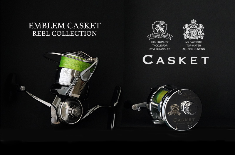 奇しくもカスケットエンブレムをつけたスピニングとベイトキャスティングの二つのリールがフルシルバーだったという偶然。統一感が素晴らしい。エンブレムボロンハンドルを所有する方が増えて 、エンブレム刻印のイグジストの再販要望の声があります。22イグジストはスプールに肉抜きの穴を設けないシンプルで稀有なデザインで登場しました。僕は元々イグジストを使っていて、この新たなイグジストにカスケットのロゴを配するデザインを想起しました。