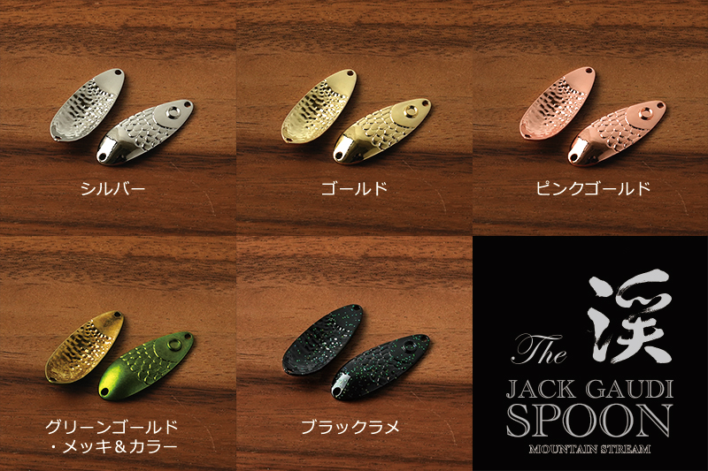 ジャックガウディスプーンはあらためて微波動で生命感を出せる稀有なスプーンだと思います。軽すぎても流れの馴染みが悪いし、重くては動かない。「3.1g」この絶妙な重さと比重感を成し得たのが亜鉛製の鋳造スプーン「ジャックガウディスプーン」なのです。さらに表面凹凸のデザインがあることも水中の粘性抵抗を剥がれさせ、微細な水流でも動くことが実現されています。これらは総合すれば鱒族にとって「水生昆虫」に近いのでは?と感じています。