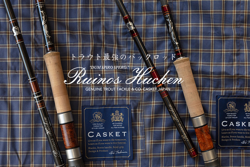 150cmに迫るモンスタートラウトを狙うためにこの強固なパックロッドを作った。ルイノとはアイヌ語で強い、ヒューチェンはイトウのことである。気水または海水での使用も念頭にガイドはチタン、リールシートは木を使いながらもFujiの樹脂製リールシートを採用。