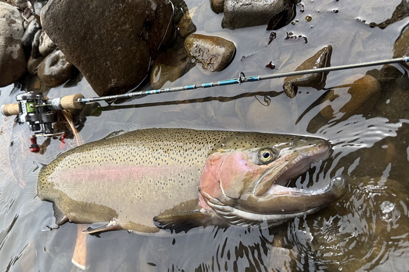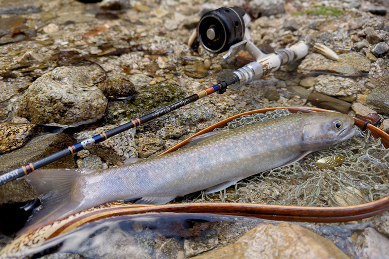 (2)クリアグレーフレームのレンズはフィールドグレーにシルバーミラー。クリアフレームで明るさ確保、可視透過率38%で色変換はわずかなので渓流、海のどこでも使いやすい設定です。