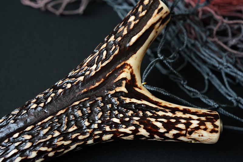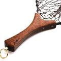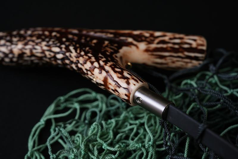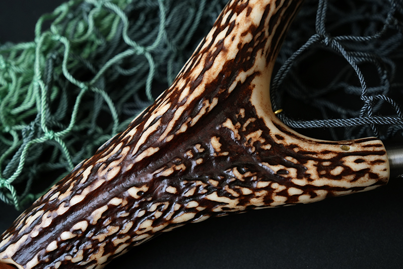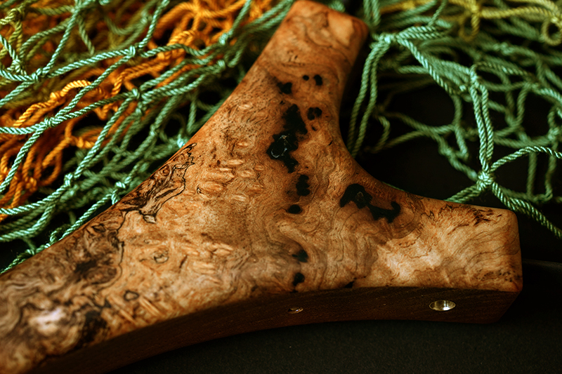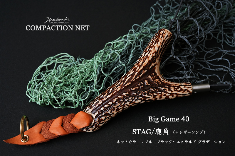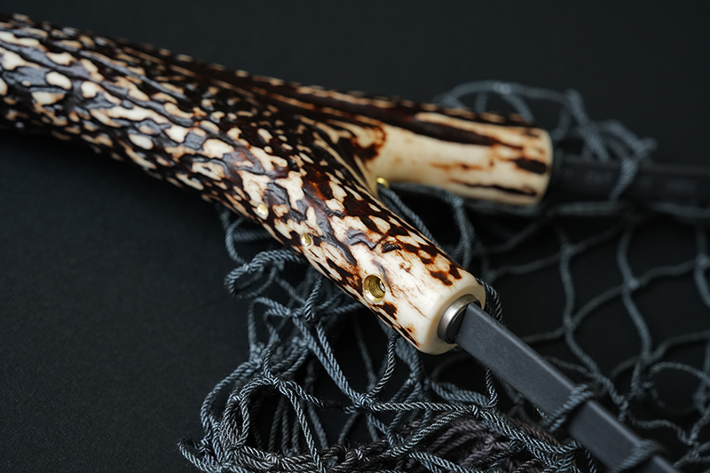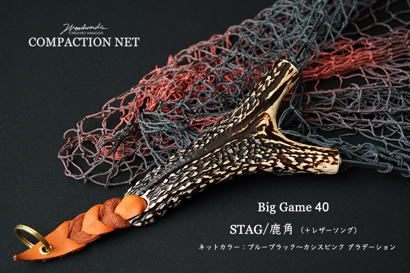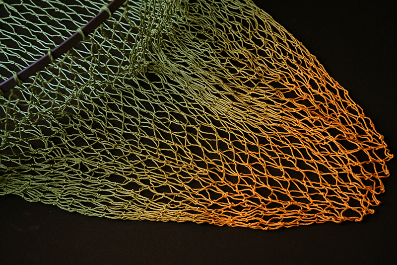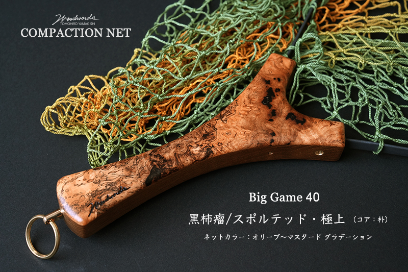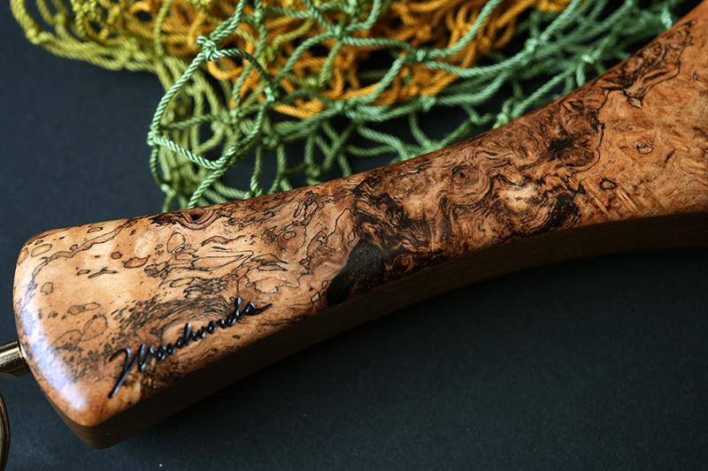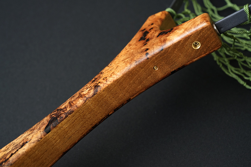 またこちらは、本流モンスタートラウトを確実にキャッチ出来る様、Big Game40をベースに手編みネットの深さを10cm深く設定。BigGame40のフレーム剛性による流れの中でのランディングし易さと、ネットの深さを+することで大型魚に対応可能な「Monster Variannto仕様」。ネットカラーは、ブルーブラック~ラスティオレンジ グラデーション。その色合いは、ポプラの瘤目が持つ橙色、黒色と完璧にマッチしています。
