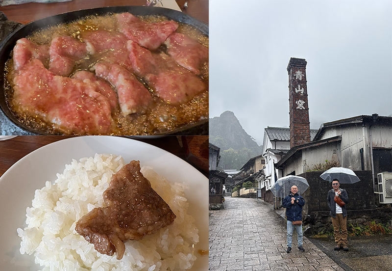 チムニーのレモンステーキ食べて、窯元巡り。雨に烟る山に磁器の里の風情が相まって素晴らしい景色でした。