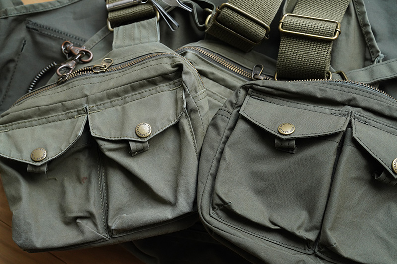 さて、画像は僕が2年ほど使用したベストとの経年比較。まずはポケット部分です。