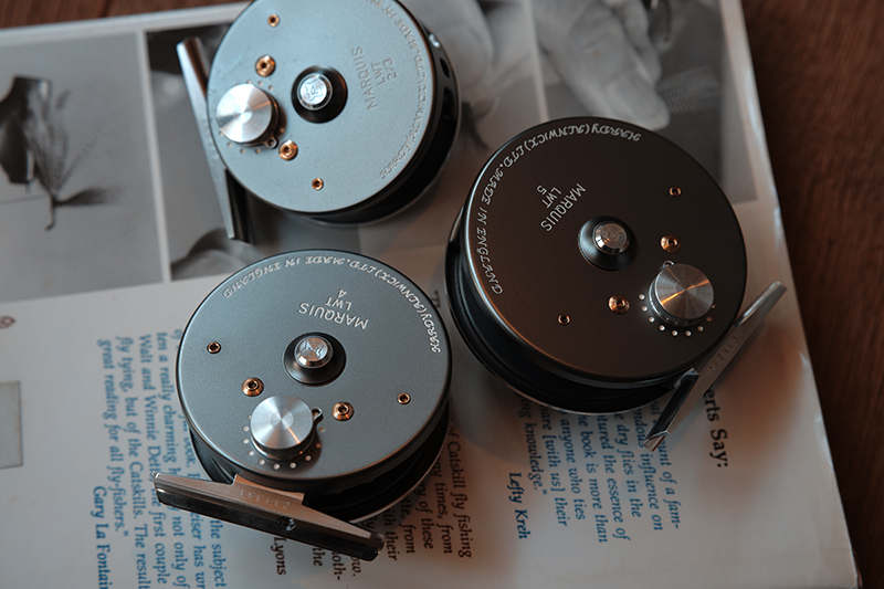 英国ハーディー社の銘機マーキスの2/3サイズが入荷しました。ラージアーバー全盛の現行品では珍しいほどに小ぶりで可愛いリールです。