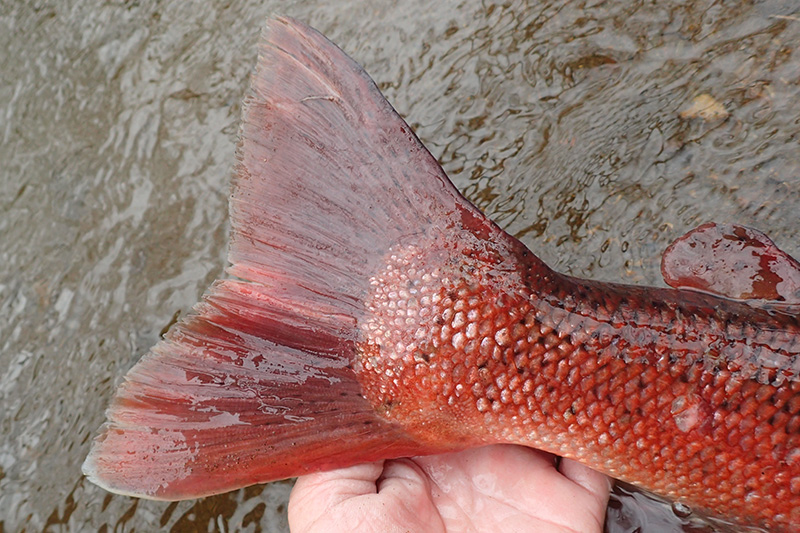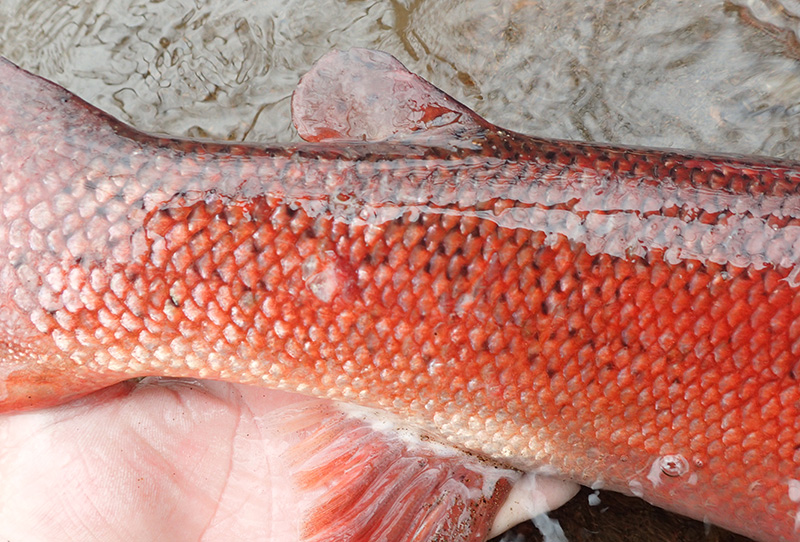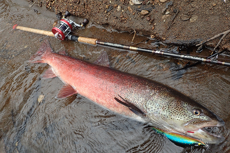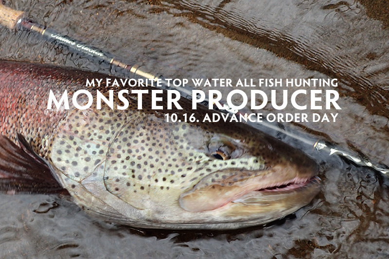 2025/10/15片岡様ご投稿モンスタープロデューサー H.teshima モンスタープロデューサーの投稿といえば、僕と同じ歳の片岡鉄也様。今年もイトウをキャッチ。おめでとうございます。約束のようなイトウとの出逢いですね。 春先にまだ婚姻色の抜けない個体はよく見かけますが、これはまた特別に赤いですね。まるで錦鯉か金魚でも見ているようです。 鱒、そして自然界のおいて雄の力の証明としてこの真紅は威光を発揮するのでしょうね。 浮上イメージ こちらのカラーは通称セルタチャート1型、この配色も独特であらゆるミノーにも採用しました。片岡様からもチャート系は大型アメマスに相性が良いので、できたら毎回ラインナップで塗って欲しいと言われたこともありました。タンニン質な河川が多いオホーツクや道東界隈で実績と共に人気のあるカラーです。 トラッド分身の術モンスタープロデューサールイノスヒューチェン