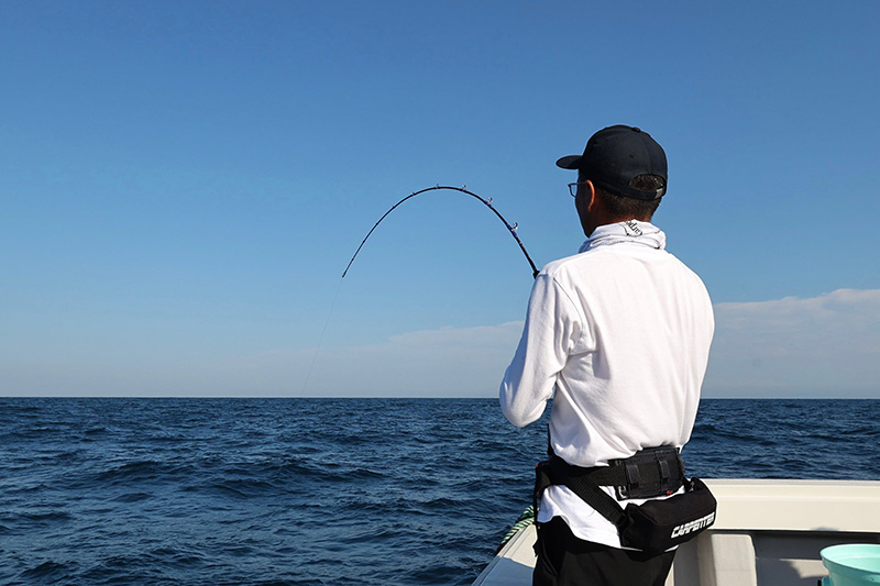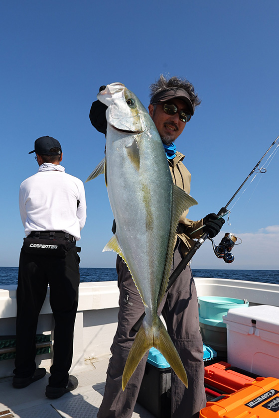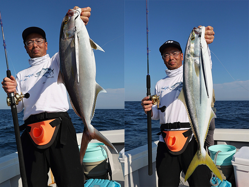 あいにくの残暑、酷暑の玄界灘の水温は下がっておらず、ジギングで色々狙う作戦でした。これが意外に面白く、ヒラゴ、ネリゴ、コシナガの良型や巨大ヤガラ、根魚などたくさん釣れました。