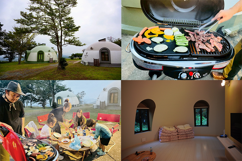 夜はコテージでキャンプ&バーベキュー。実はこの後、大雨が降り出してバーベキューは中断。(トホホ)