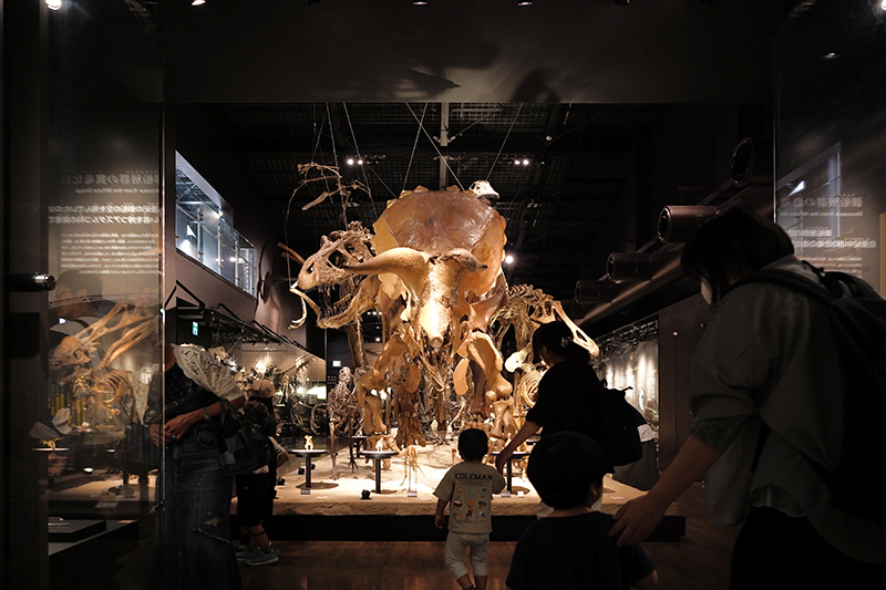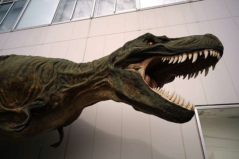 1番の目的地は「御船町恐竜博物館」。入るや否やティラノサウルス、トリケラトプスを始め、一度は聞いたことのある恐竜たちの化石模型がビッグスケールでドーンと出迎えてくれます。