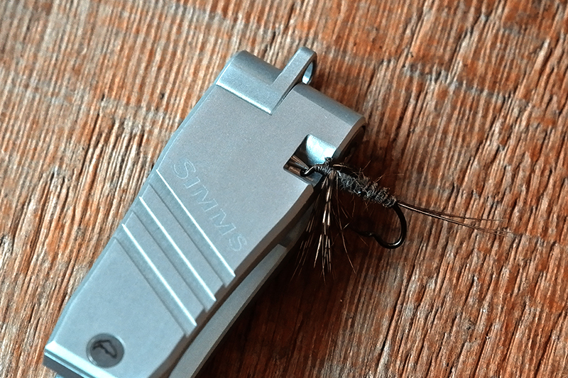 アイの詰まりを解消するニードルももちろん変わらず装備してます。素材は航空宇宙等級のアルミニウムを使用し、なんとも嬉しい「MADE IN USA」。僕も旧モデル(2013)を使っていますが10年経って未だ壊れる気配無し。シンプルにして高品質なシムス製ニッパー、1万円という価格は決して高くは無いのです。