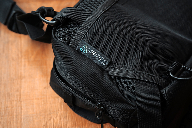 そして別注バージョン最大の目玉がその素材。通常の7倍もの耐久性を持つと言われる「コーデュラナイロン」に「スペクトラファイバー」を織り込んだ生地を採用。これは地球上に存在する最強・最軽量の素材の一つ「超高分子量ポリエチレン繊維」、つまり僕たち釣人にお馴染みのPEラインが織り込まれているようなものです。
