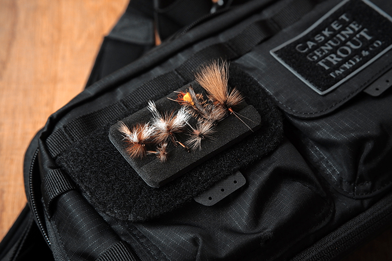 ポケットのフラップ自体もベルクロ(メス)になっており、使い手に応じてカスタム可能、アクセサリーポートとして機能します。内蔵のフォームパッチを持ってきても良いですし、別売の同社の「