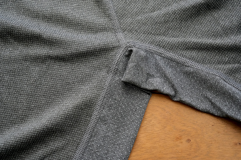 生地の織りにも大変拘ってあり、水分を素早く吸い上げ通気性も保つ凹凸のある4ウェイストレッチ生地をベースに採用。肌触りも滑らかで伸びも十分です。