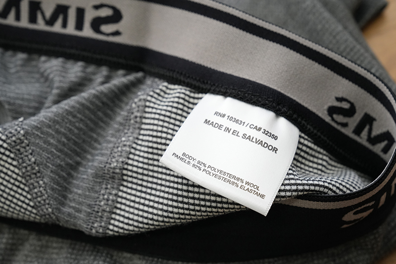 逆光で見ると、その特殊な織りと工夫を凝らした構造がよくわかります。SIMMSが世界最高の自社ウェーダーのために作ったアンダーウェアですから、そりゃこれだけ凝った作りにしたくなるのも無理はありません。