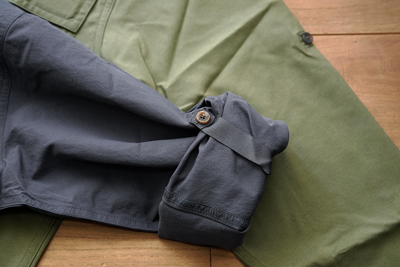 腕部分のボタンは袖をロールアップして固定するためのもの。釣りをしている最中に袖をまくり上げ直す必要がなく夏場に重宝する機能です。