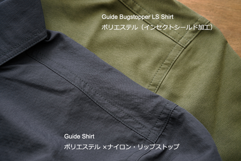2種最大の違いは生地にあり。オリジナル版はポリエステル×ナイロンで主に摩擦や引っ張りなどの耐久性の優れています。さらに裂け止め効果を持つリップストップ織りを採用。バグストッパー版は防虫加工を施したポリエステル100%。生地がしなやかで、素材由来のナチュラルなストレッチ性も備えているのが特徴です。ともにUPF50という最高クラスの紫外線防御性能も有しています。