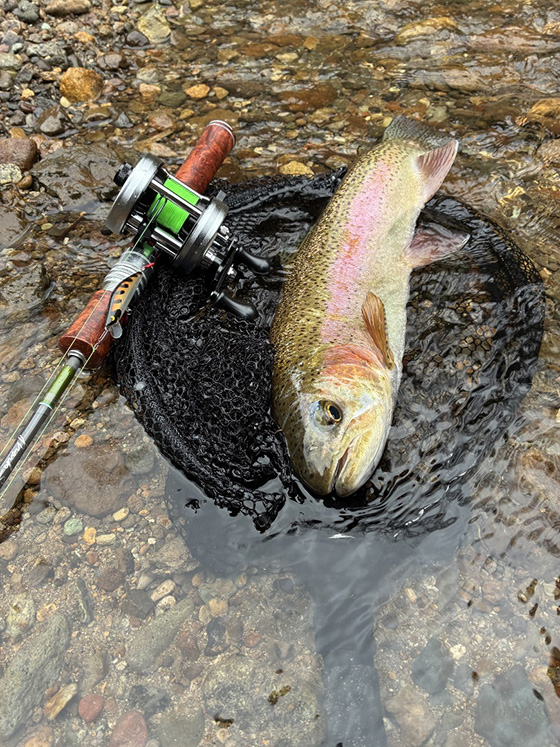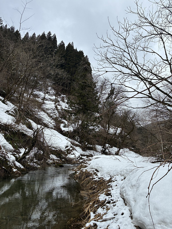 解禁後の初釣行に隣県までバイクで遠征してきました、まだ北陸は残雪が厳しく今回は比較的に本流に近いポイントで挑戦しました。それでも雪はまだ深く、体力には自信がありましたが進むには中々こたえました。バイトやチェイスも無く残念な釣行となりそうでしたが終盤に予想外の虹鱒が食ってくれました。これ一匹のみの釣果となりましたが極寒の中バイクで苦労して来た分、嬉しい釣果となりました。忘れられないメモリアルフィッシュになりそうです。