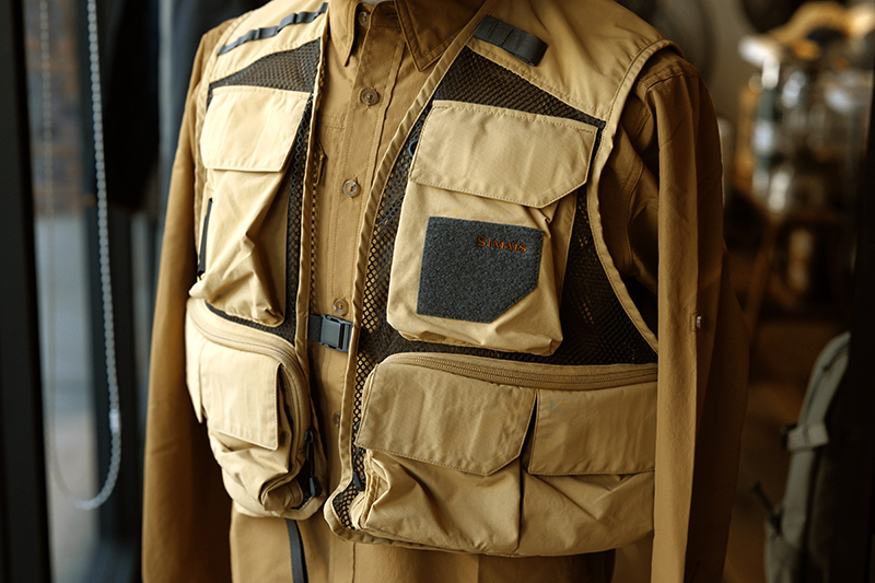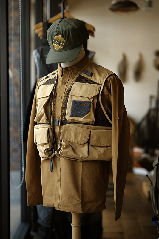 先日ご紹介したシムスの新作「Tributary Vest」のもう一色「Bistre」が追加で入荷しました。イエローベージュなこちらのカラーだと、よりローテクな雰囲気が漂います。 同色系のガイドシャツ「Sepia」と合わせると、ちょっと垢抜けきれない90年代的な空気感。なんとも言えないダサカッコ良さ(←ほめ言葉です、念の為)が個人的にはタマらない組み合わせ。 さらなるレトロ感を重視するならミッドクラウンでフロントパネルに芯がない「Double Haul Cap」の出番。こんなナインティーズな雰囲気、結構好きです。