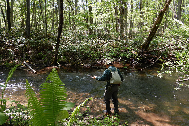 渓流では5cmミノーを主体に組み立てる方が多いと思いますが、僕(てしま)は60mm、78mmを常にボックスに入れています。(昨年秋のヤマメも60mmの試作)以前は細身の90mmも持っていき、50mmでさんざん通した後に90mmで1発でバイト!なんてこともありました。