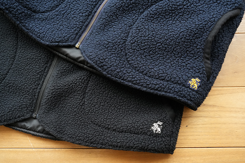 裾部分は緩やかにカーブを描き、着用時に立体感のあるデザインに。シンプルなのに単調に見えません。またライオンワッペンはネイビーにはゴールドを、ブラックにはシルバーを付けています。 一見シンプルなのに、着ると簡単に格好良く見えるこのベスト。実はこれだけのデザインを散りばめたカスケット自慢の一枚なのです。受付は本日から、お届けは10月下旬を予定しています。各カラー、サイズともに製作可能数に達し次第、受付終了となりますのでぜひこの冬のお供にご予約くださいませ。