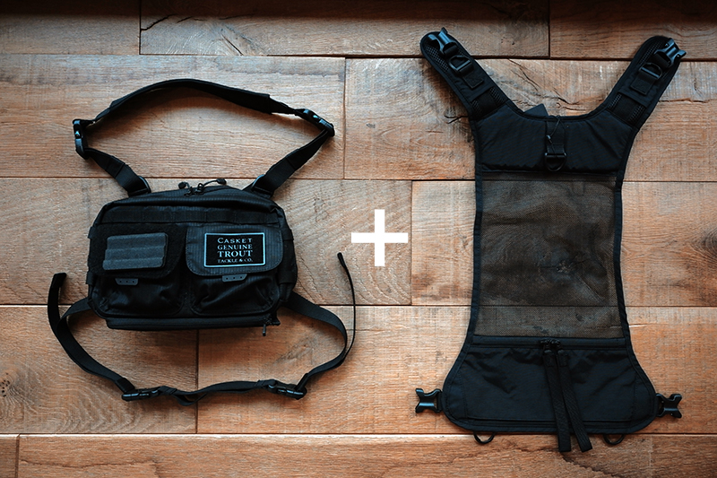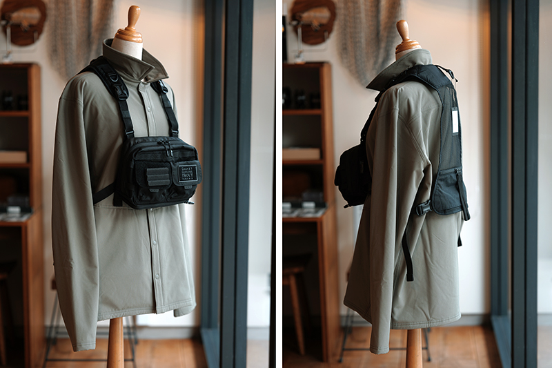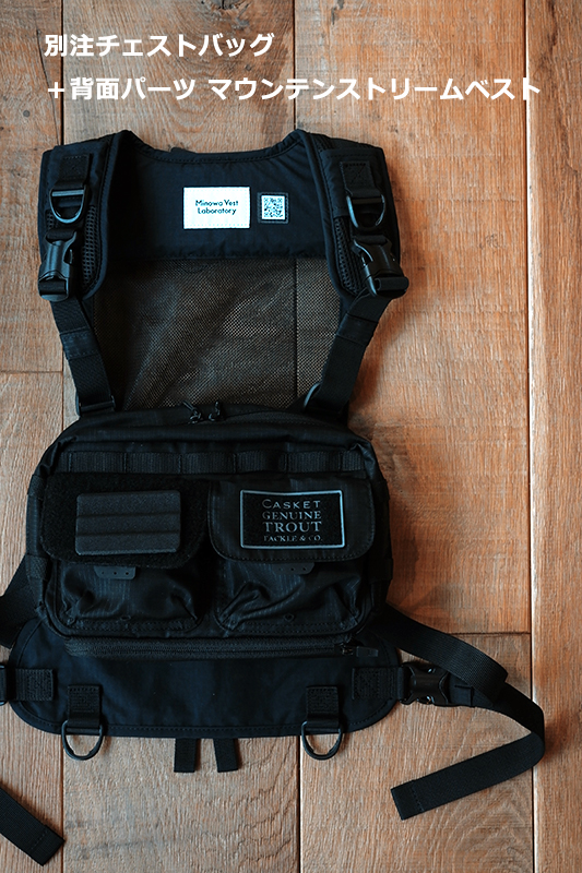 11月4日に販売開始の別注チェストバッグ。お昼に引き続き、外部ポケットと装備をご紹介します。なんと言っても数多ある国内メーカーのベスト製造を請け負ってきたミノワベストラボラトリーですから、その設計技術とノウハウは本当に素晴らしい。このチェストバッグもあらゆる要所にアクセサリー用ループやリングを設置。ルアー、フライなどスタイルを問わず、様々な使用状況を想定されているのです。