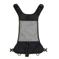 背面はメッシュポケットになっており、薄いものを収納可能。通気性を損なわないメッシュ素材を用いながら、硬質で耐久性が高そうな素材使いはさすが。下段にはDリングも備えます。