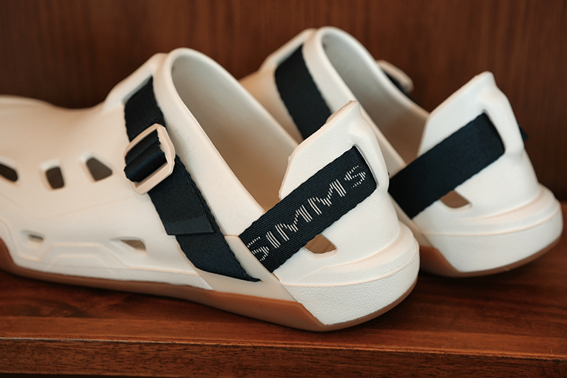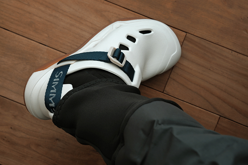 首元にはシムスのトレードマーク「ジャンピングトラウト」と、フックなどに吊るしておくためのハンガーループを搭載しています。
