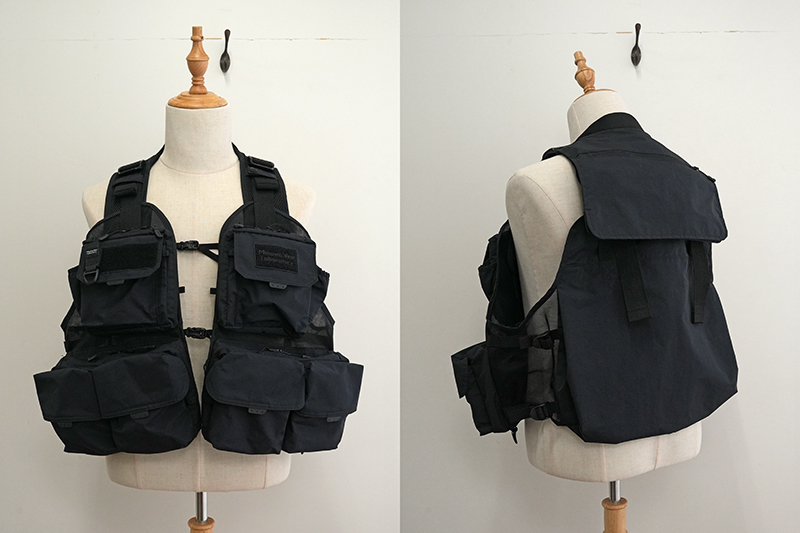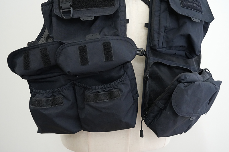 本当に細かい部分にも妥協無し。アクセサリーを取り付けるためのリングやフラップ等も随所に配置。これで27000円という価格も本当にすごい。国内きってのフィッシングベスト・プロ集団たるプライドが凝縮された一着です。