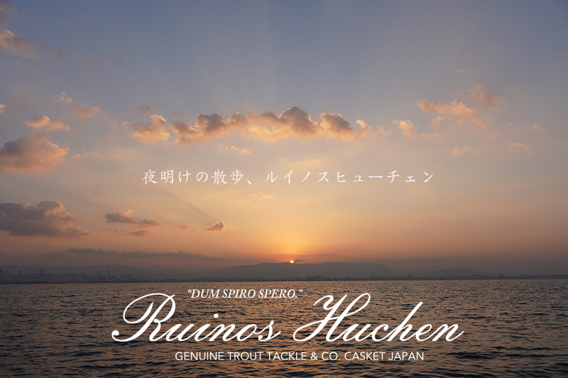 ところで砂浜ではウエーダーも履かず、ニーブーツでランディングネットもなし、シムスの防水ヒップパックだけで歩く。片手には大型の鱒、イトウに特化して作ったルイノスヒューチェンを手に歩く。朝陽が昇るのを見ながら投げて巻く、歩く、投げて巻く、歩く、また投げては巻く、この繰り返し。