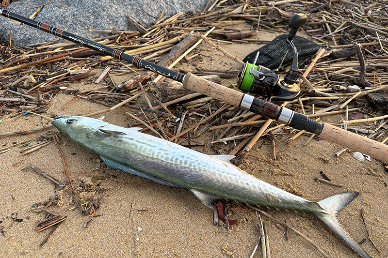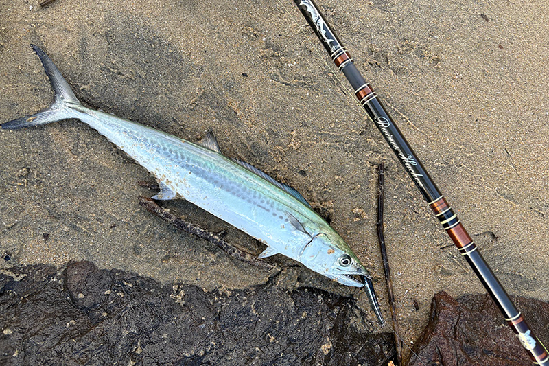サゴシもルアーをひったくる。勢いよくルアーに飛びつくのが見える。この日の散歩は運良く魚にも遊んでもらえる。