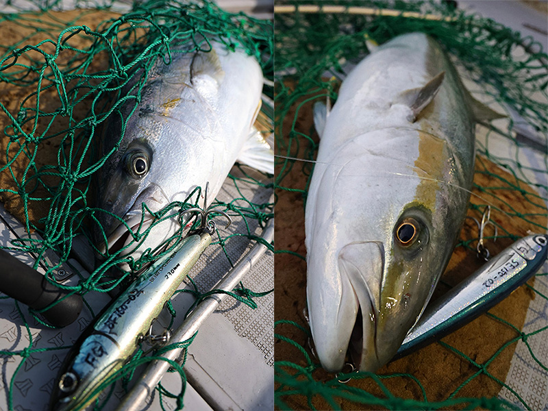 夕まずめはSE150FG-Hでキャッチ。BF160FGと似たような使い心地ですが、最後のスライドが秀逸です。ゆっくり目のアピールでドカンと出ました。こちらもロッドはBMB73/36RS、リールは新調したDAIWA 25SALTIG20000H、ラインPE8号、150lbリーダー。