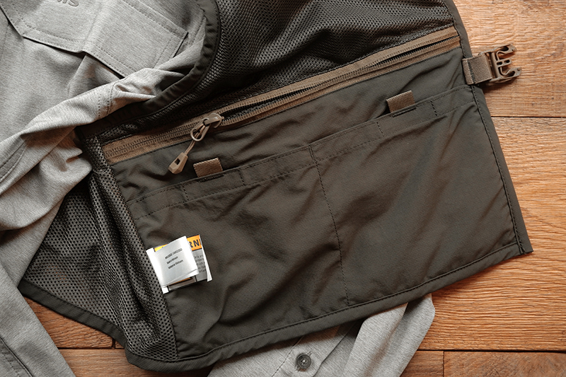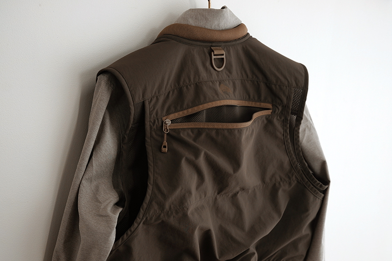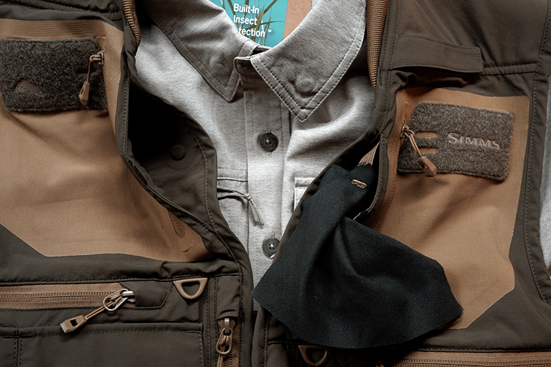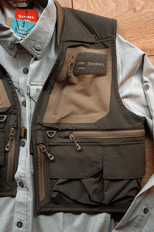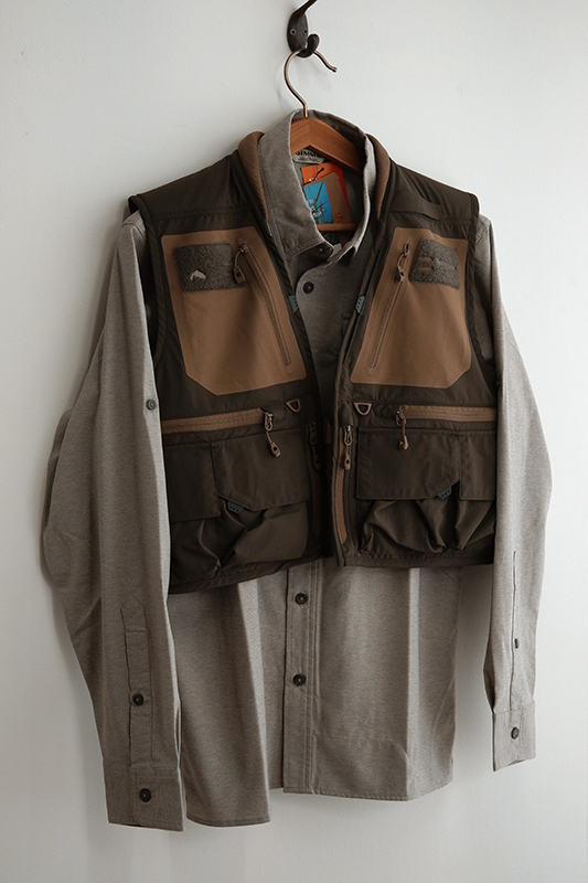裾にはシムスのスローガン「FISH IT WELL=悔いなき釣り人生を」の文字。ふと岩に腰を下ろすと目に入って、気分を上げてくれるデザインです。ちなみにシャツのボタン一番下を外しておくのは個人的なコダワリ。(←単に動きやすいだけです。笑)