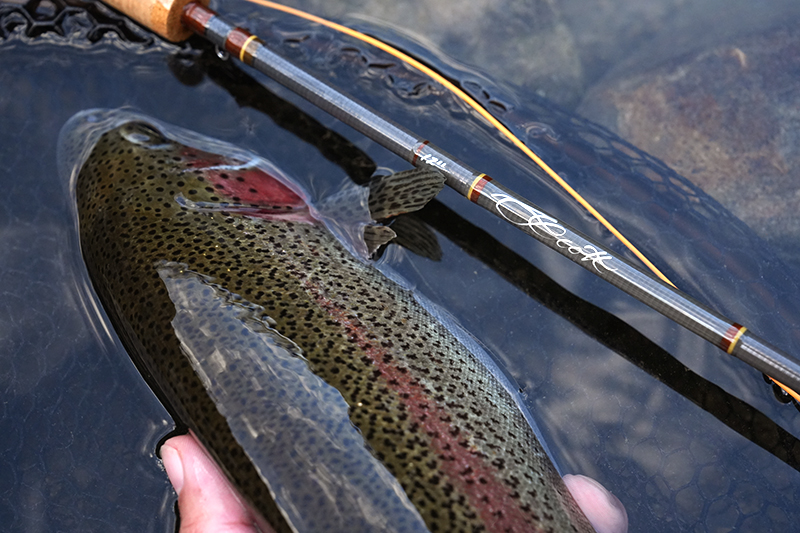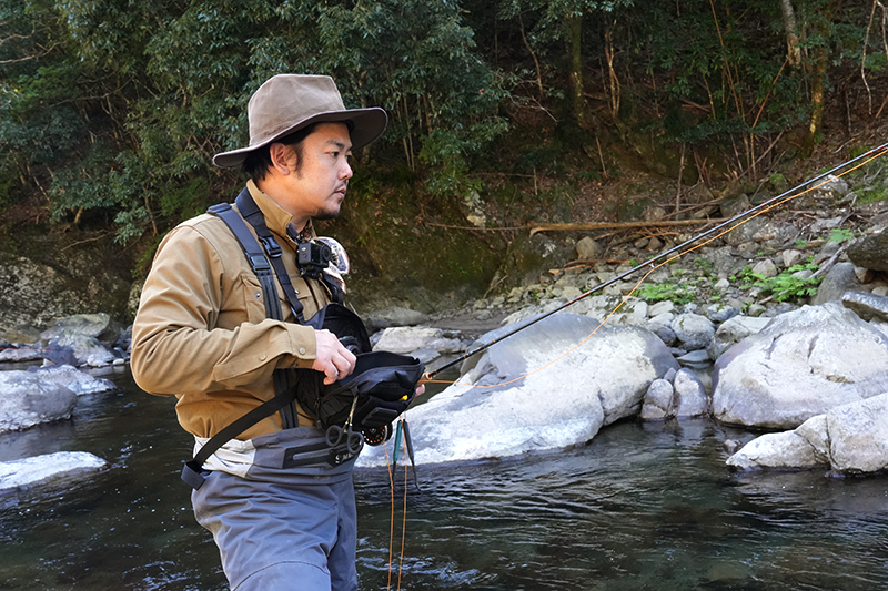 チェストバッグのテストも兼ねて、先日社長(テシマ)とともに訪れた西米良冬季虹鱒釣り場。 僕は初めてだったのですが、自然渓流を利用した釣り場で雰囲気良し、足場が良い所も多く、安全で歩きやすい。駐車場(1日/500円)はすぐそばで、仮設トイレも有りで、とっても釣りがしやすい場所でした。 ウェーダーに着替えていざ出陣!僕はフライウィエトパッカブルウェーダーのパンツモードで軽快スタイル。ソックスは5フィンガーウールソックスが蒸れず、匂わず快適。現在、来季に向けて新色も企画中です。 今回僕が主に使用したフライはブラッシー。スコットロッドと同じコロラド生まれのニンフフライです。1960年代にコロラド州サウスプラット川で生まれたこのフライは面白い誕生話をもっています。 フライを完成させる時間がなく、ウエイトとして巻いた銅線を剥き出しのまま投じたところ爆釣!というなんとも釣り人らしい逸話。この時の銅線が真鍮コーティングされていたため、Brassie 「ブラス=真鍮製」という名前になったんだとか。同じコロラドで作られるスコットロッドとブラッシーのツーショットは兼ねてより撮りたかった一枚。 銅線の重量と、抵抗のないシルエットのお陰でビーズヘッドでなくとも沈みが早いのが特徴。またバランスと沈下姿勢が異なるのか、ビーズヘッドフライを見切るような状況にも強いと感じます。(この日がまさにそうでした) ロッドはGS803/4ジャパンスペシャル。渓流域において最も汎用性のある8ftという長さと3番というラインウエイトを組み合わせた日本渓流ど真ん中の一本。通常よりややスロー気味なテーパーに調整してあるのか、長めのリーダーシステムでもコントロール性が高いのが特徴、素晴らしい名竿です。 最後にはドライフライを沈めて漂わせるという荒技にて、目の前で完全無視を決め込む40cmクラスの魚も釣ることができ、大満足で西米良冬季釣り場を後にしました。 せっかくの遠出だからグルメも楽しみの一つ!ということで、この日の昼食は車で数分のところにある「川の駅・百菜屋」の椎茸南蛮定食を頂きました。ボリューム満点、オススメです。