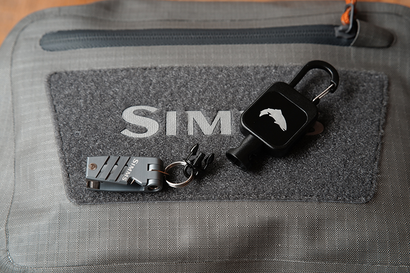 背面にはジッパー式の大型ポケットと、最大容量のゲームポケット。首元にはランディングネット用Dリング。最近ではジャケットにも付いていないことが多いですから、ベストやバッグについていると助かります。